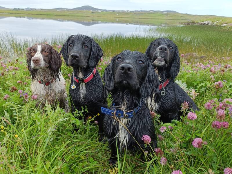 We have 4 Sprocker spaniels - Bonnie who is almost 5, Bracken who is 2 and a half, Belle who is 20 months old and our newest addition Betty who has just turned 1 year old. We are lucky that the sandy beach is only 400 yards from Mollans and they get plenty of play time on it.
